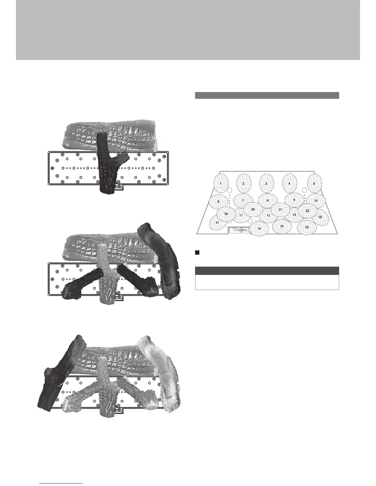 on top of the burner. Place 5 pebbles along the rear of the burner (1 to