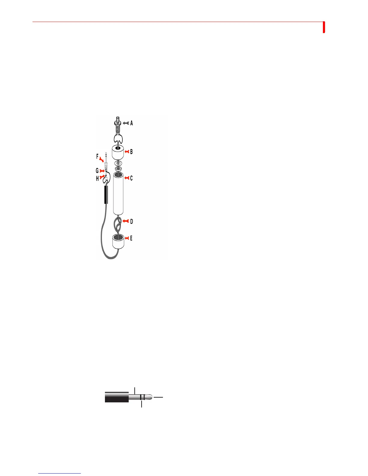 8 Connect to the tip (G) and the base (H) of the plug. Don’t connect anything to the middle sec-