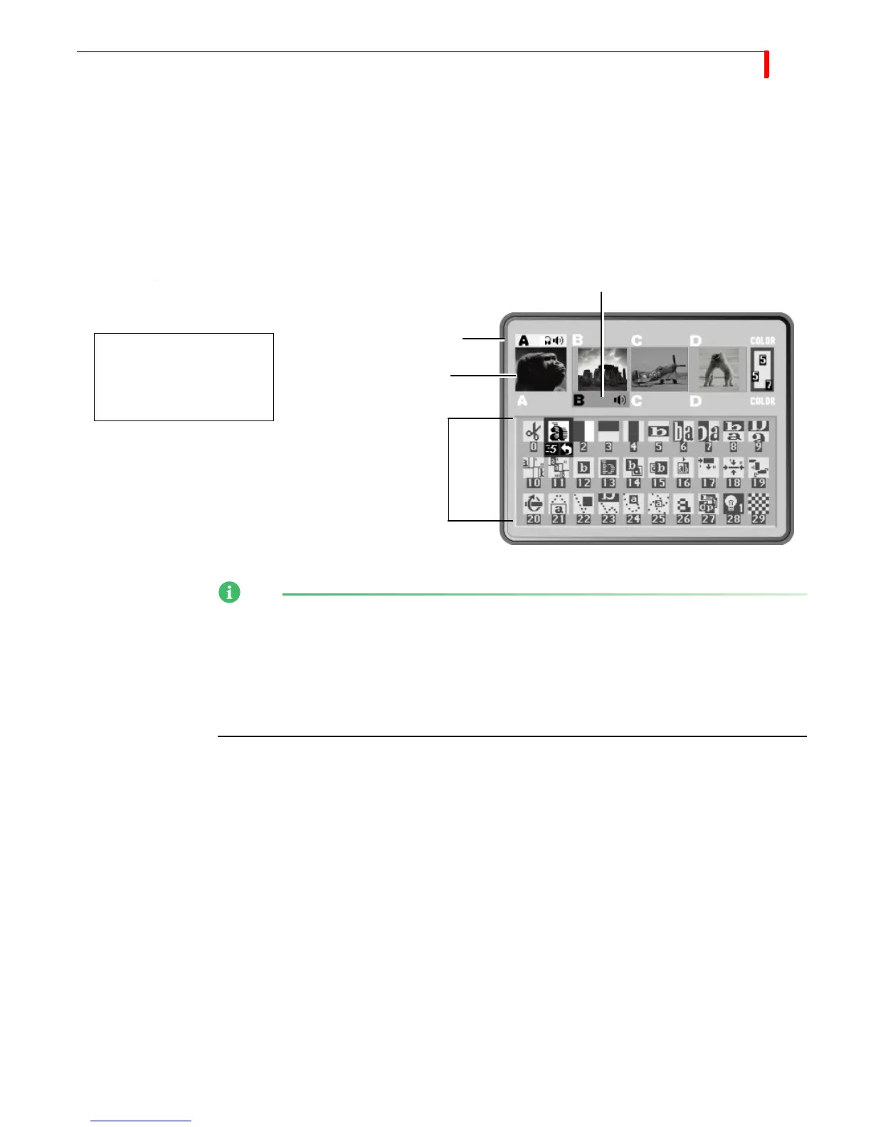 Transitions Menu — Rows and columns of icons representing some of the transitions avail-