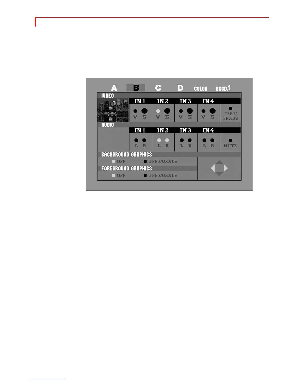 • After starting the MX-4 with all devices connected and turned on, press ROUTE to display the