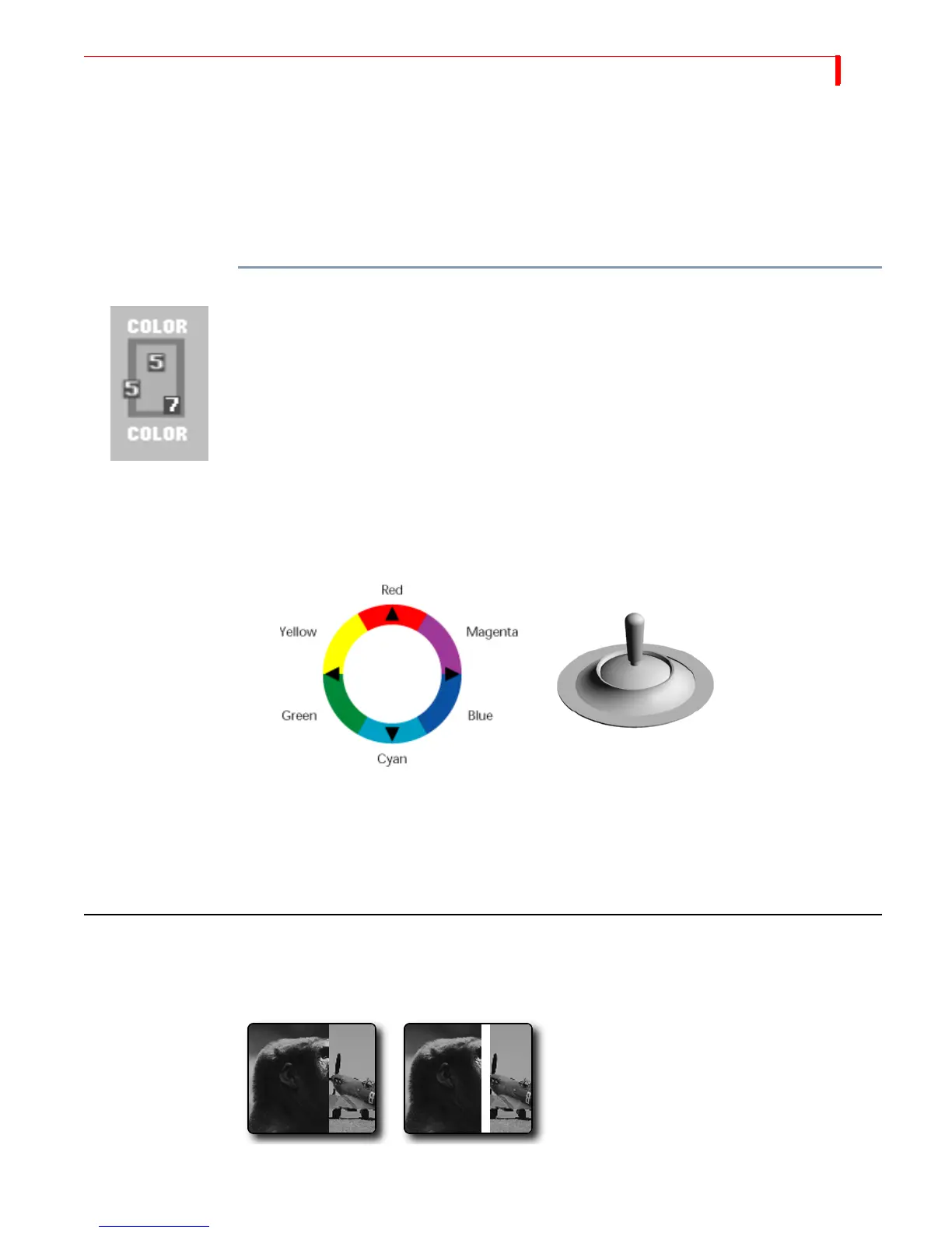 c Move the JOYSTICK relative to its color ring to adjust chrominance (or color value).