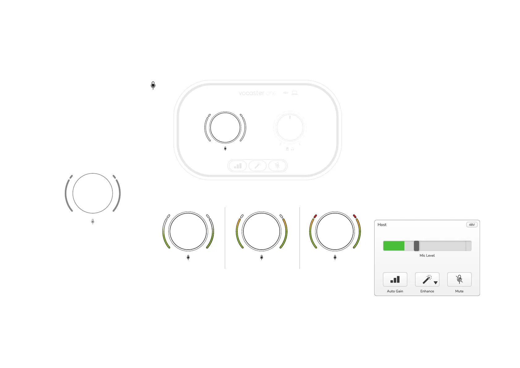 sets the microphone gain, and the level to
