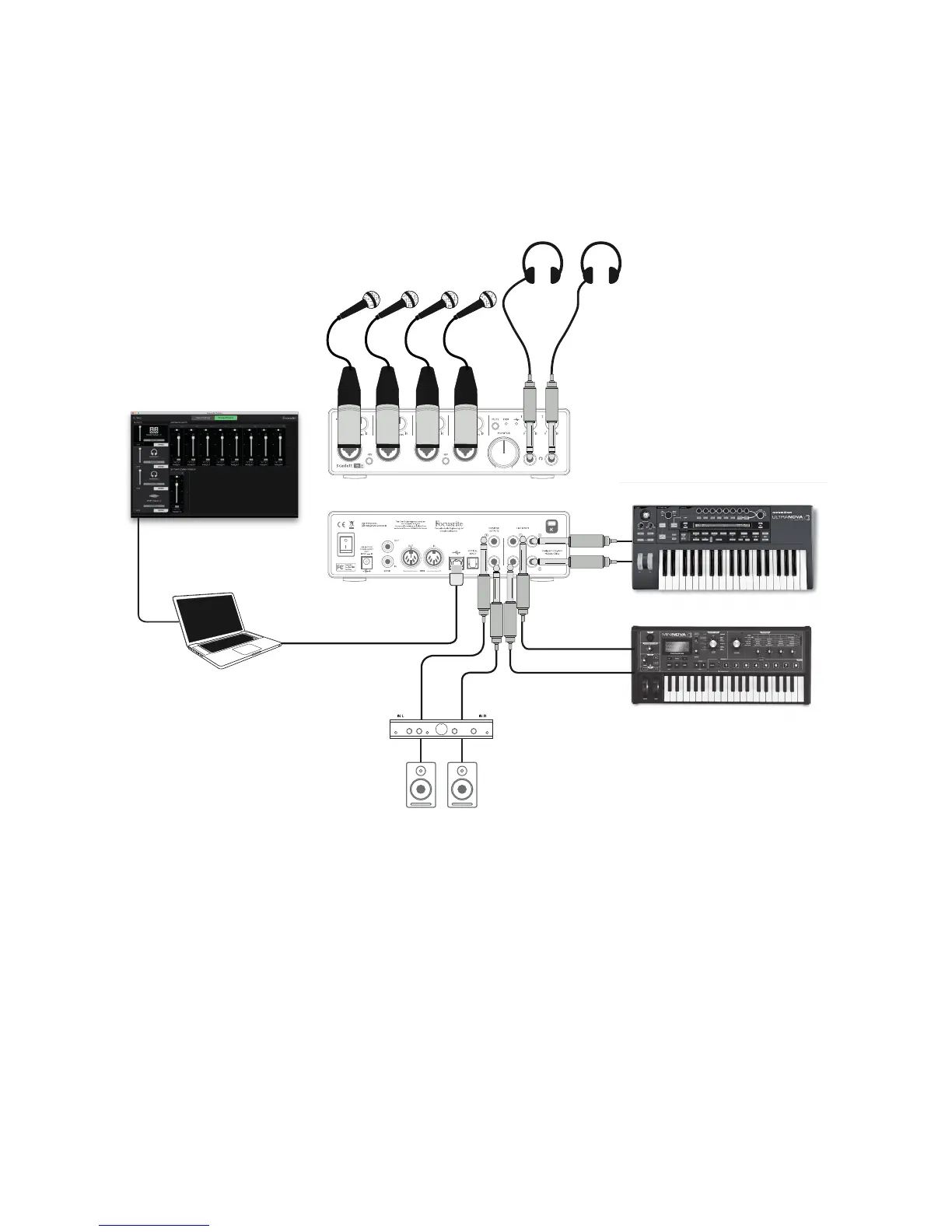 “own” Scarlett 18i8 headphone output. Focusrite Control lets you define up to four separate stereo