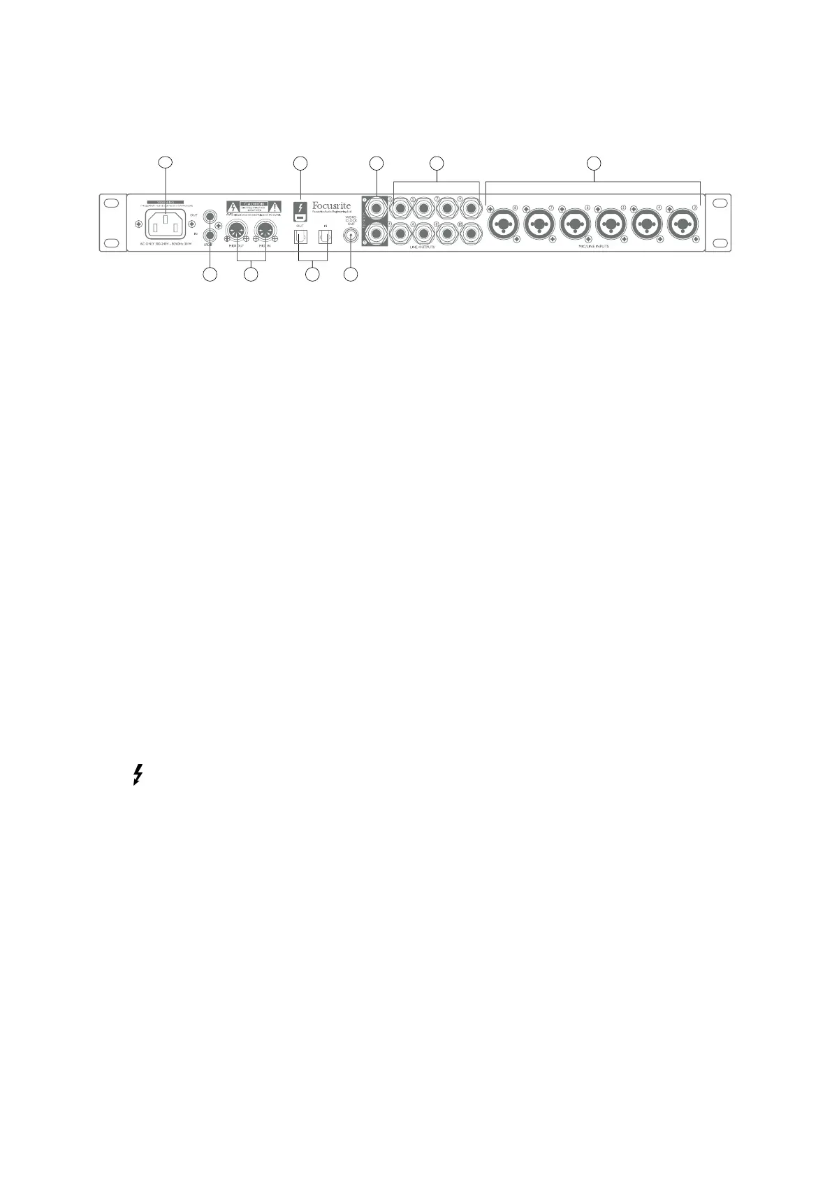 9. AC mains – standard IEC receptacle. The Clarett 8Pre is tted with a “Universal” power supply,
