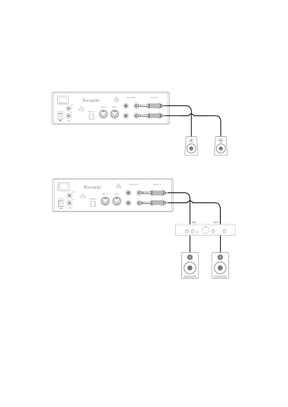 speakers have balanced inputs, use 3-pole (TRS) ¼” jacks to connect them to the Clarett+ 4Pre.