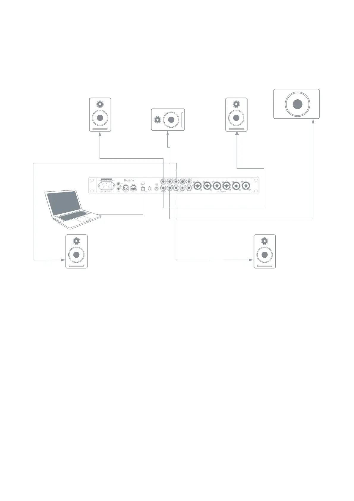 The example below shows how you would connect the six loudspeakers in a 5.1 surround monitoring