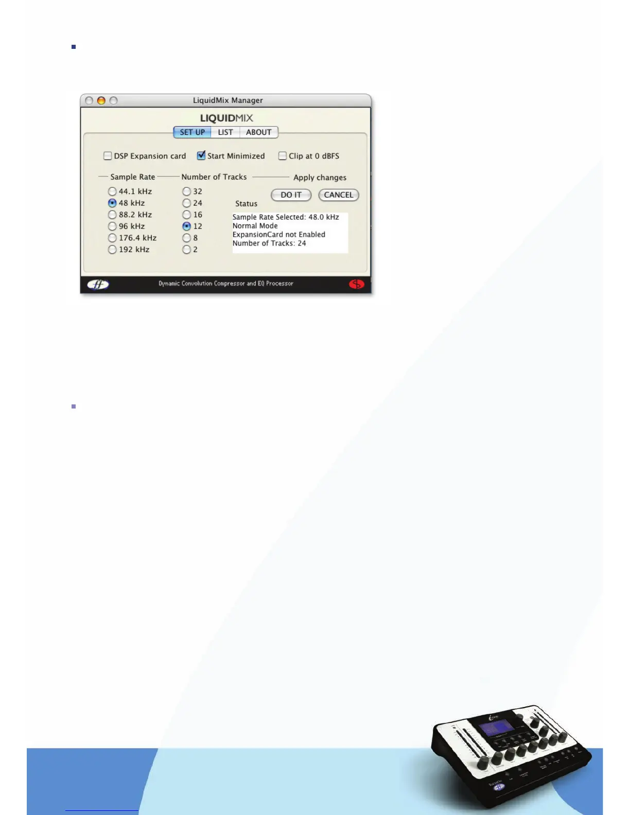of the Liquid Mix software) can also be set within this window. At higher sample rates, some options will