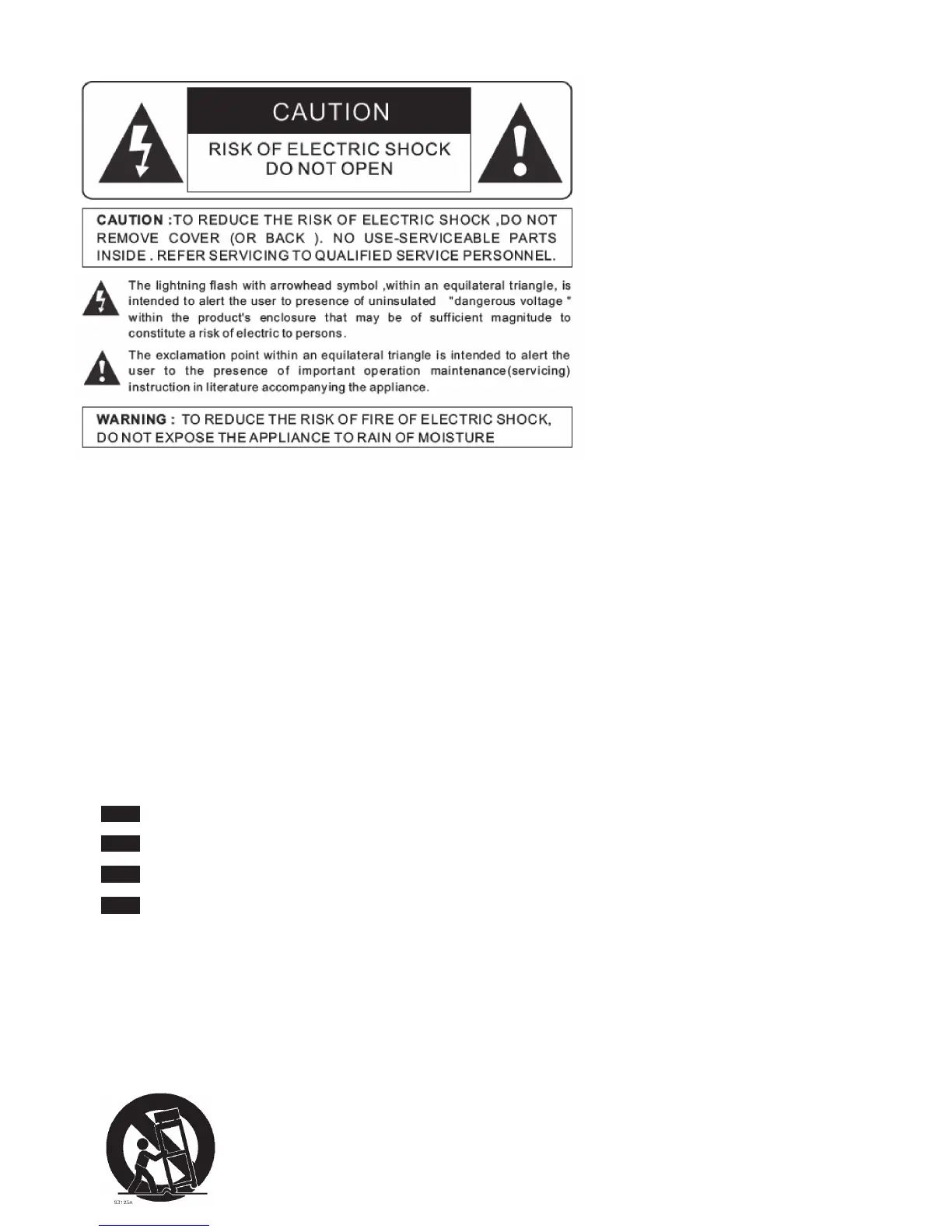 Use only with the cart, stand, tripod, bracket, or table specied by the manufacturer, or sold with the apparatus. When a cart is used, use caution when 21.