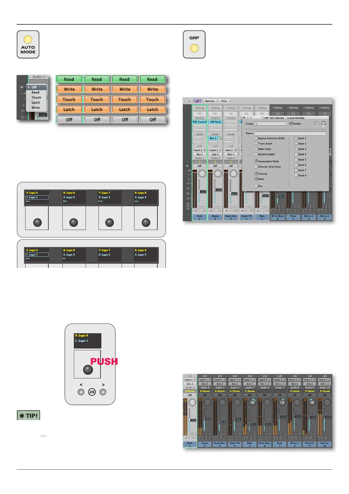 pressing GRP (22) followed by a Fader Strip SEL switch (18)