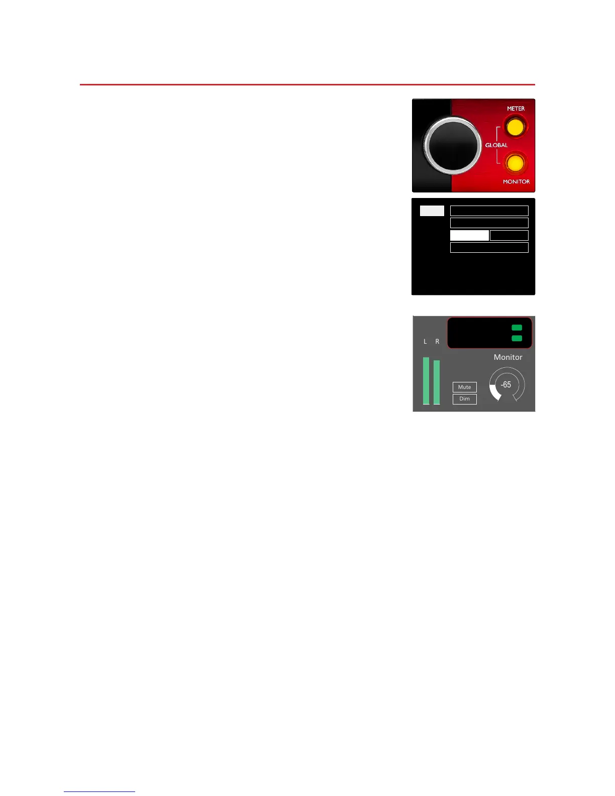 To exit the Global settings screen press the Monitor button (or select