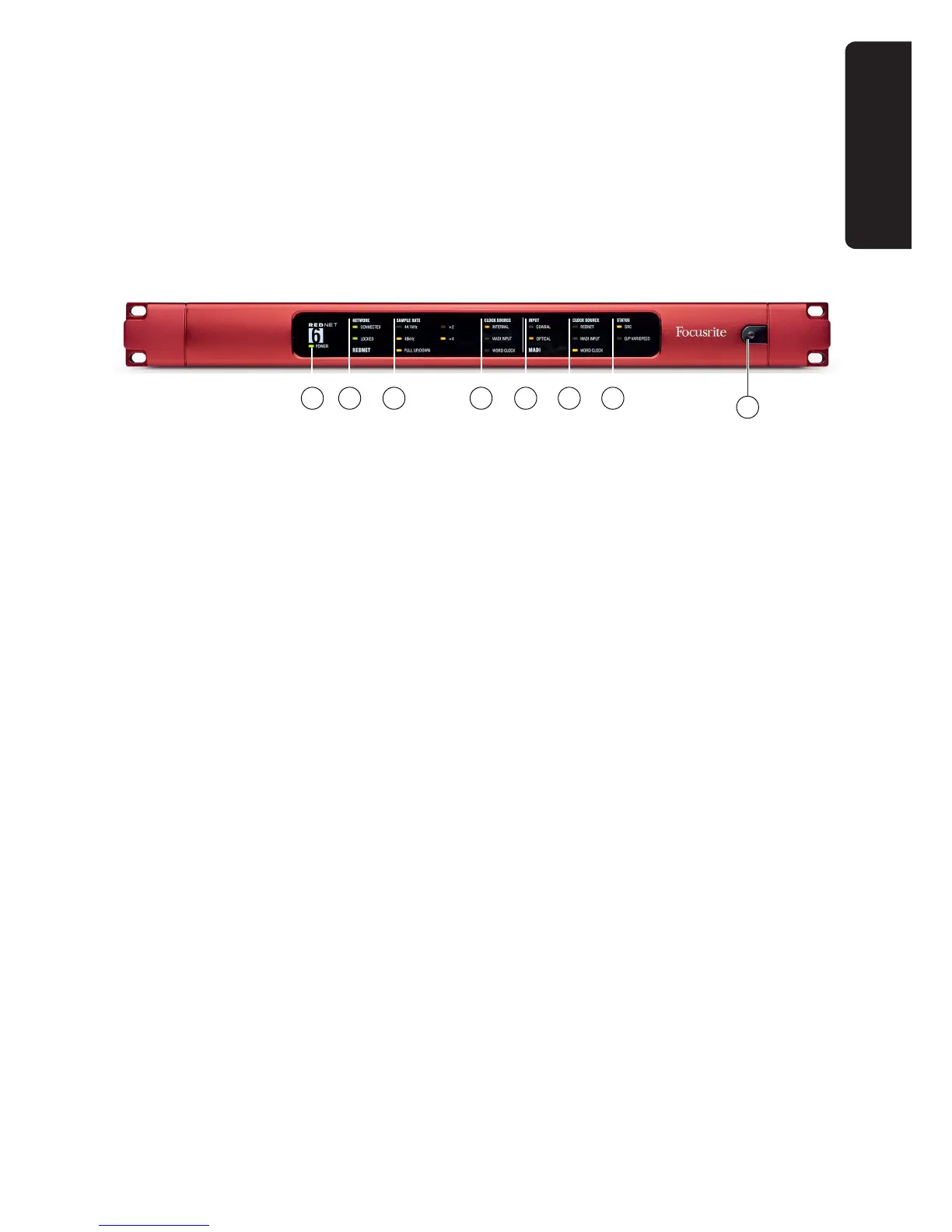 • • INTERNAL – illuminates to indicate the internal RedNet 6 sync clock is in use.