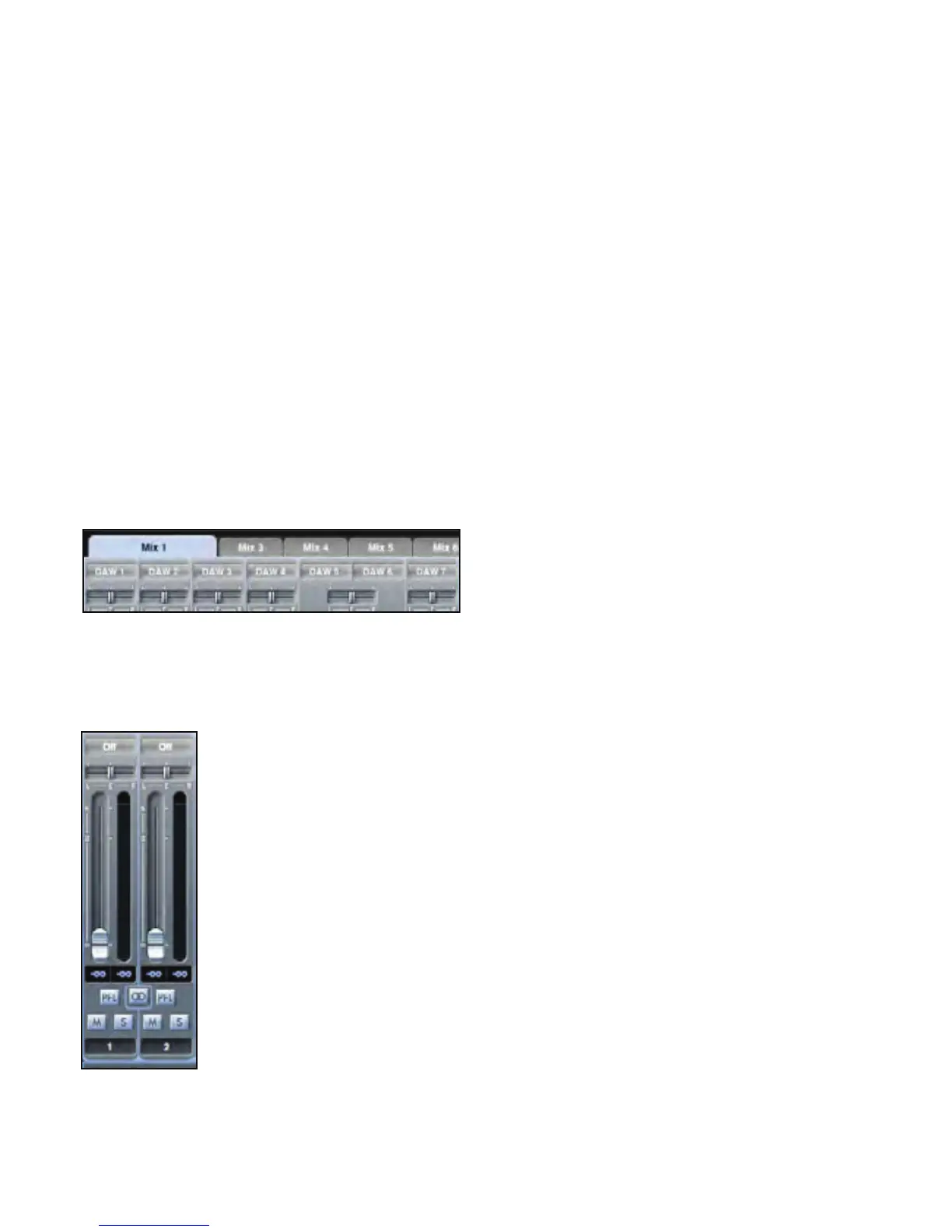 The Mixer Section is used to create mixes for monitoring purposes. The mixes you create do not affect how the audio inputs are