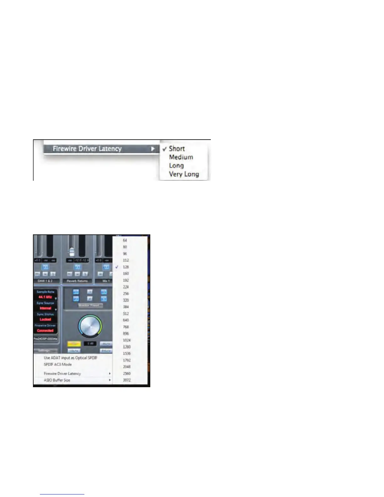 ASIO buffer size (Windows.) The Firewire Driver Latency affects the performance of the Core Audio or ASIO buffer settings.