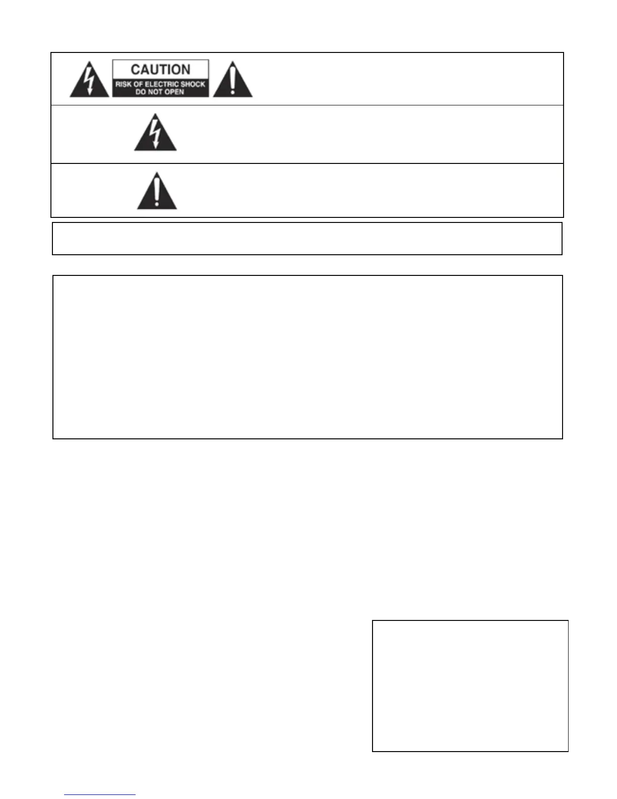 This important safety information is duplicated on the bottom surface of the unit chassis