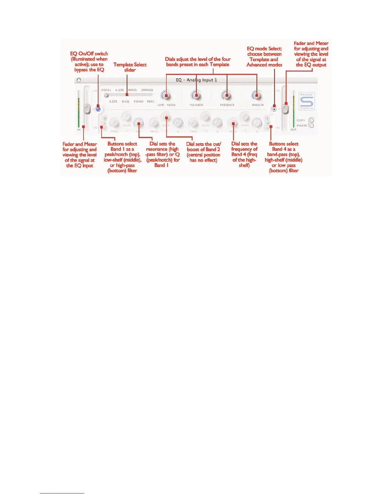 frequency spectrum. The Saffire EQ is 4-band parametric, with the