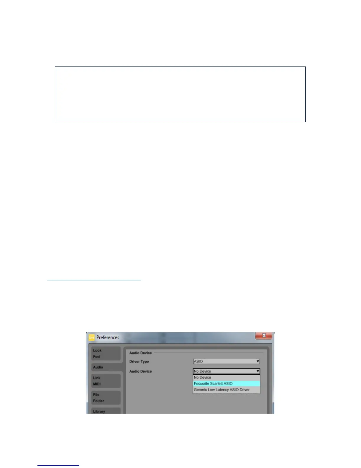 case, you must manually select ‘Scarlett 2i4’ as the driver on your DAW’s Audio Setup* page.