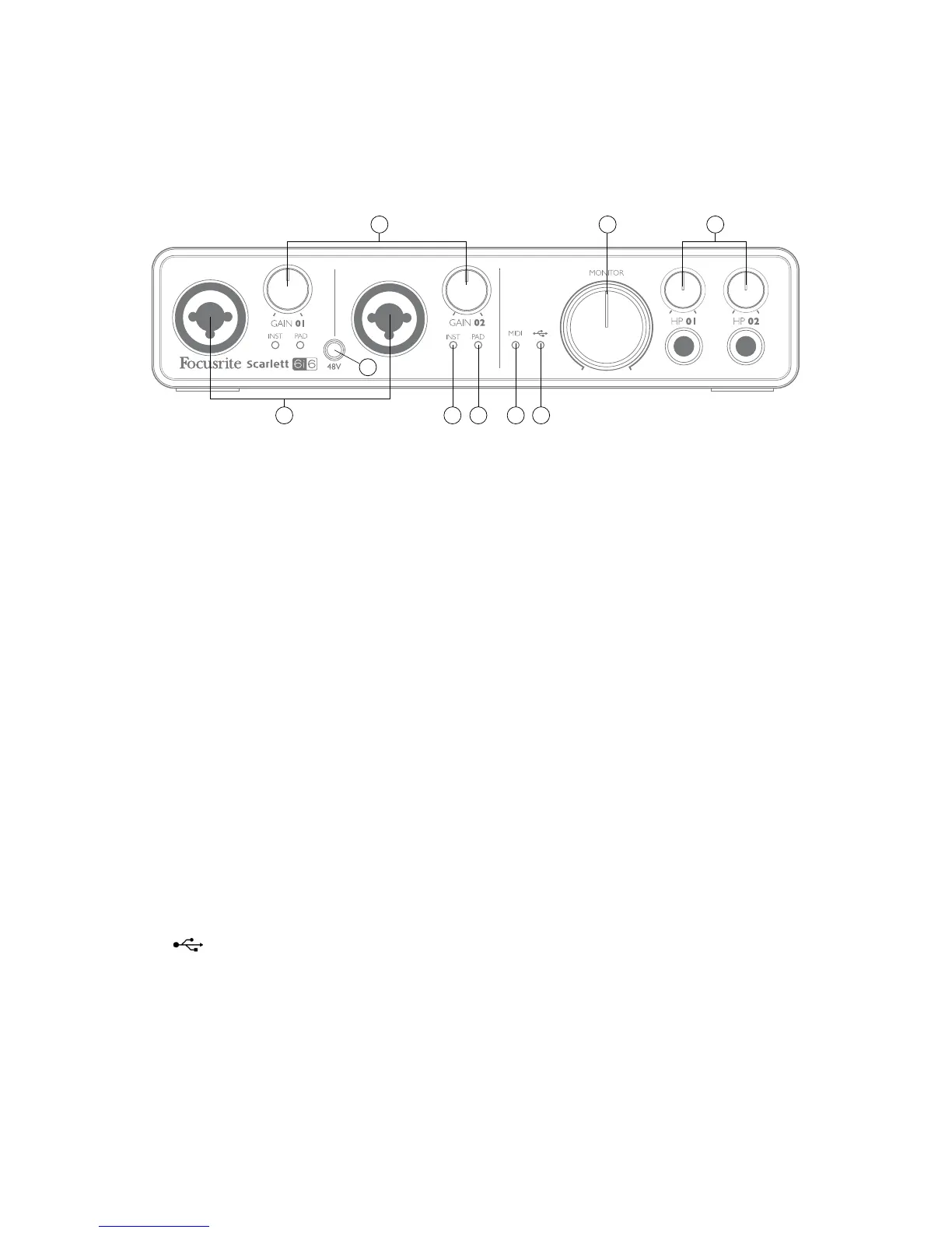 software from Scarlett MixControl. The pad increases the headroom of the input stage, and