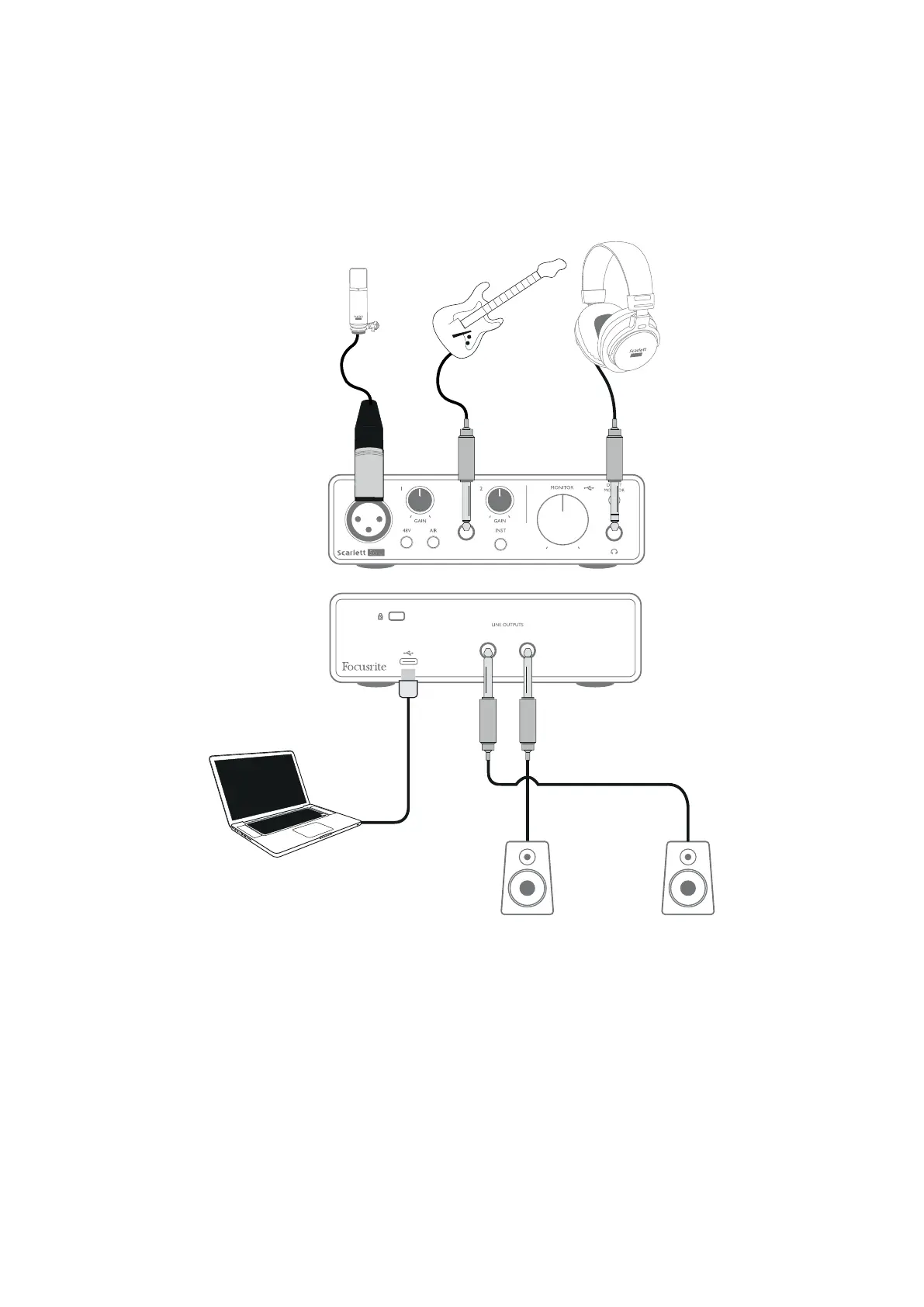 This setup shows a typical conguration for recording using DAW software on your Mac or PC. You