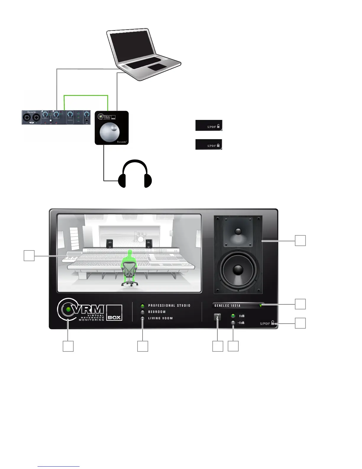 8. Environment display:Thisgivesagraphicalrepresentationofthelisteningenvironment,monitorspeakerplacementandlisteningposition