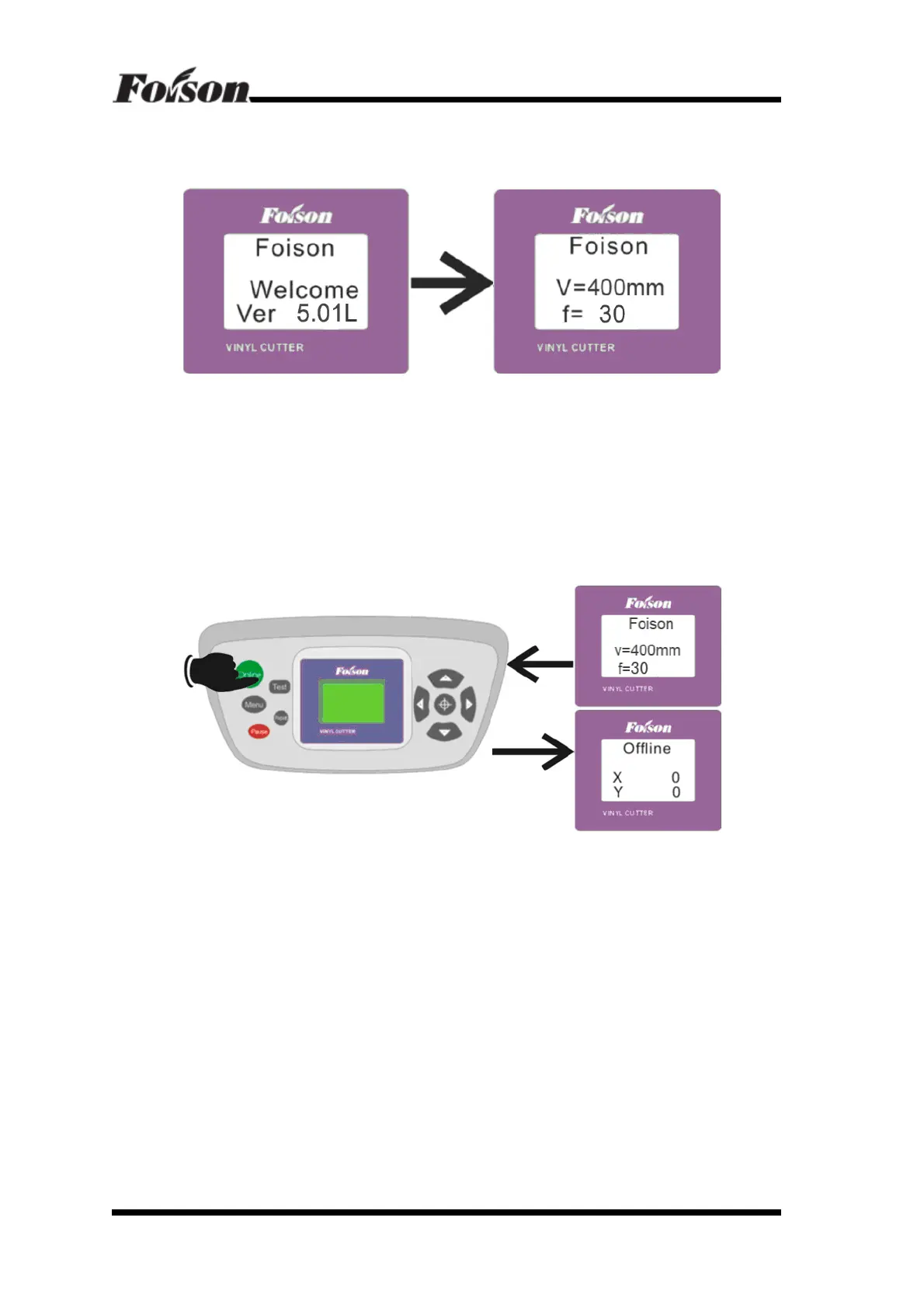 status. Press “Online” can switch it into Online/Offline status. When cutter transmits data to