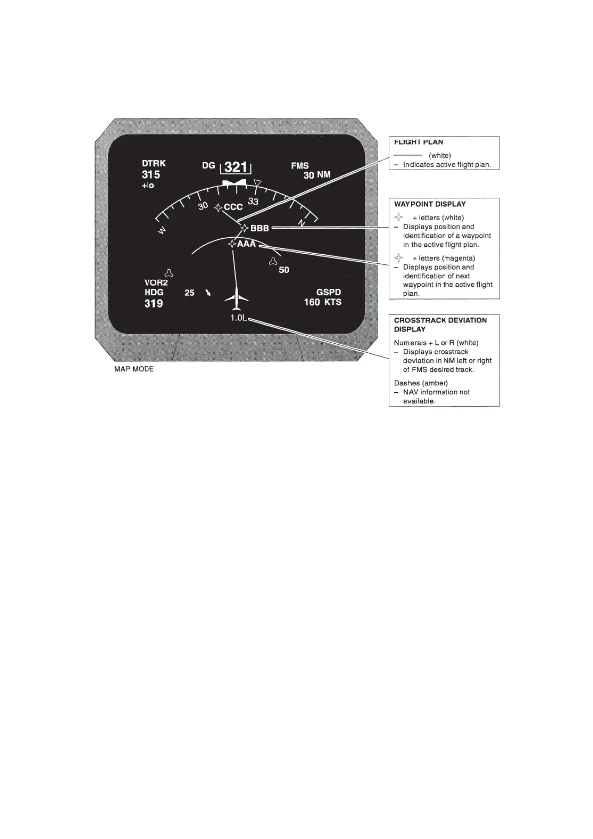 Fokker 50 - Navigation Display Flight Plan and Waypoint Data; Flight Plan Display; Waypoint Display and Identification; Crosstrack Deviation Display