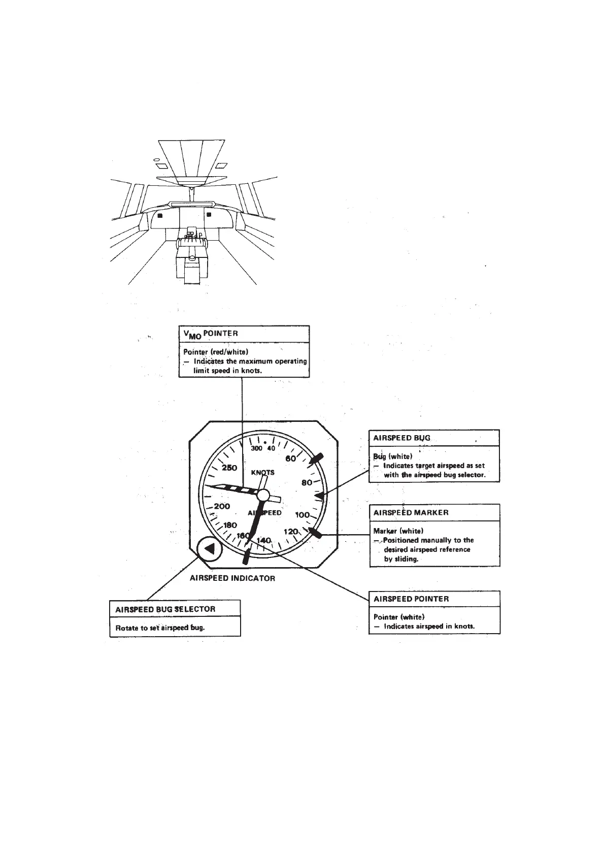 Fokker 50 - Airspeed Indicator Controls and Indicators; VMO Pointer and Airspeed Bug; Airspeed Marker and Pointer; Airspeed Indicator and Selector