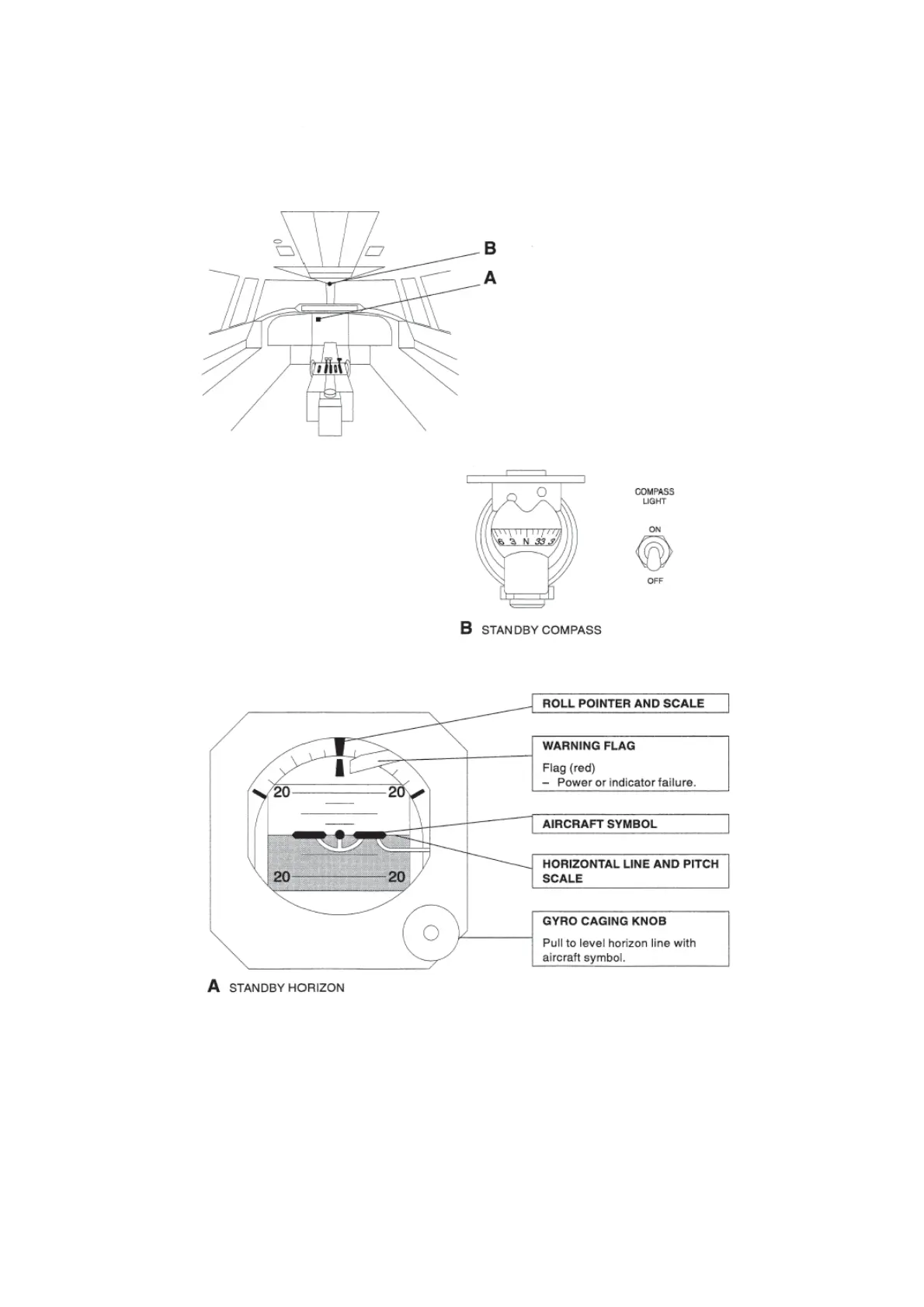 Fokker 50 - Standby Horizon Controls; Standby Horizon Controls and Indicators; Standby Compass Controls