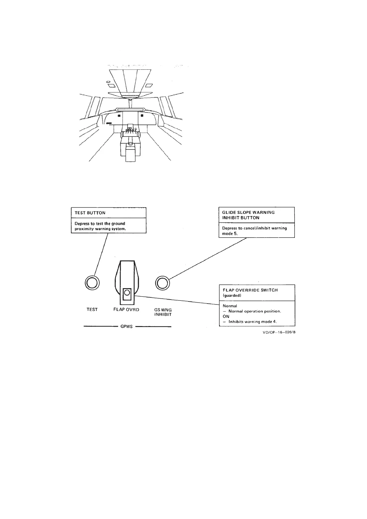 Fokker 50 - TAWS Control Panel Buttons; TAWS Test Button; Glide Slope Warning Inhibit Switch; Flap Override Switch