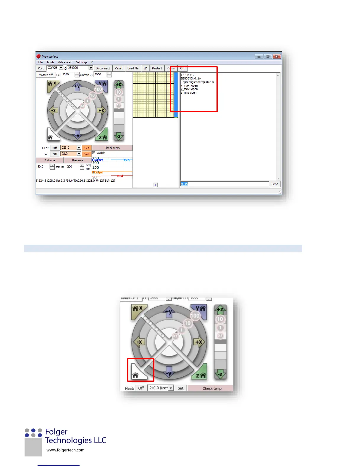 To verify that the motors are wired correctly, click on the home button on Pronterface. This will tell the gantry to