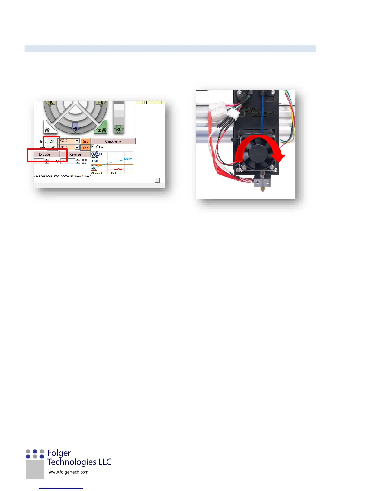 under 170°C. Now the drive gear should turn in a clockwise direction. Turn off the hot end by clicking the “Off”