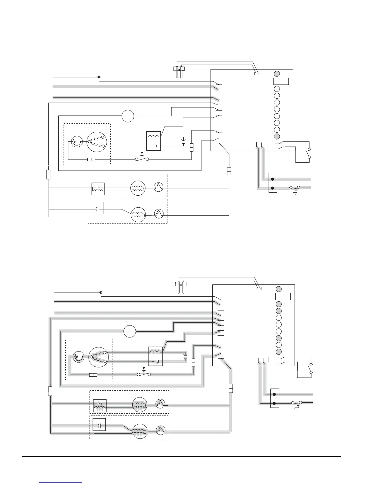 The gearmotor start windings are also energized through a current relay (or start capacitor). The B-E and WTR LED