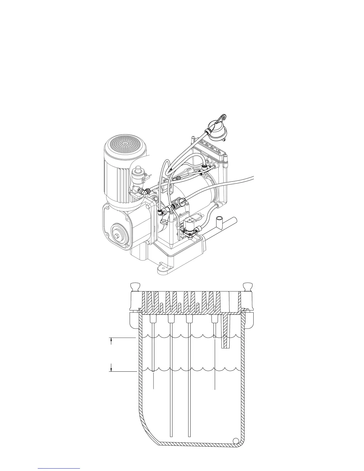 The water level in the evaporator is controlled by a feed solenoid and level detecting sensors. Referencing the