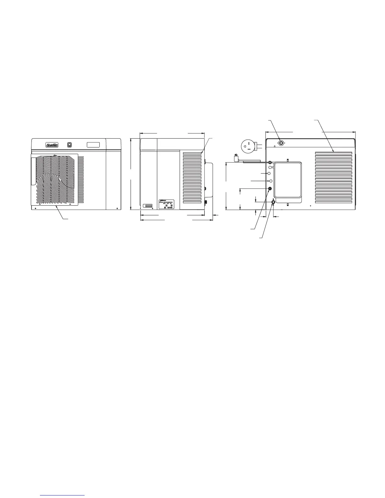 Air-cooled model HCC1400A icemakers – 18" (458mm) minimum clearance between discharge and air