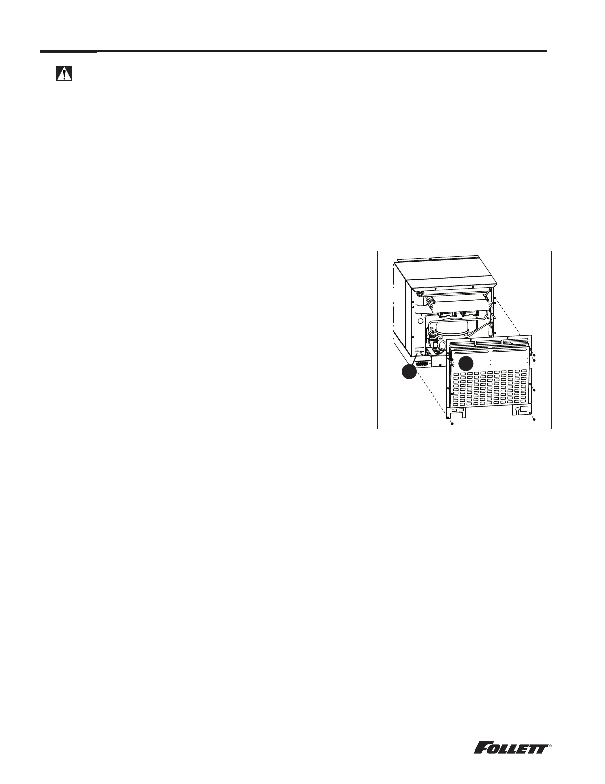 Removal of dust and other particulates from air intake areas and the condenser is important for proper operation.