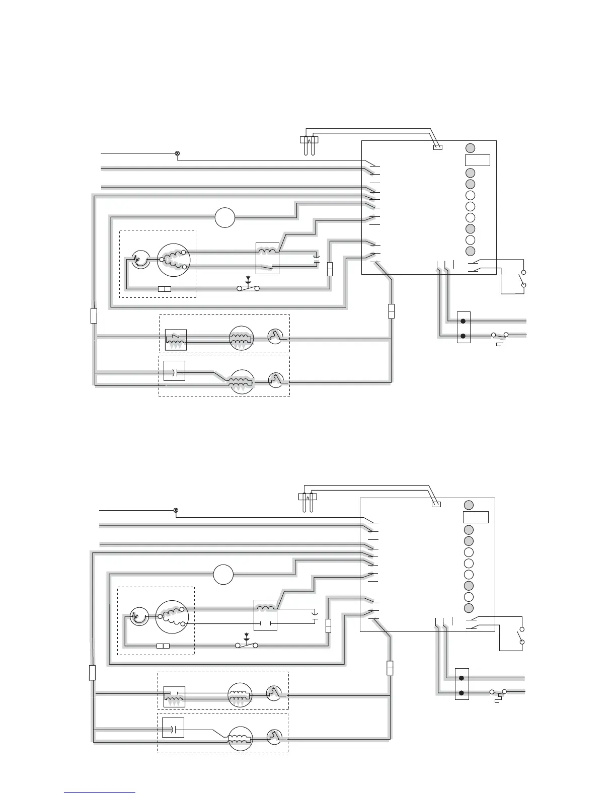 compressor. The gearmotor start windings are also energized through a current relay (or start capacitor). The B-E