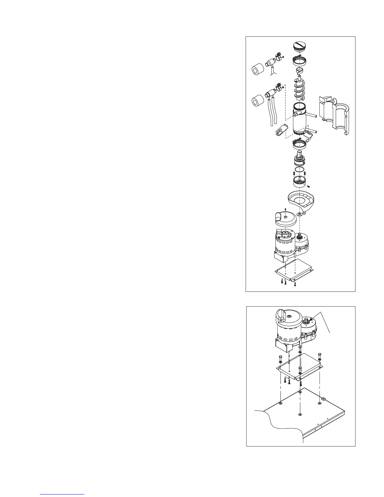6. Lower bottom bearing assembly into evaporator mounting base.