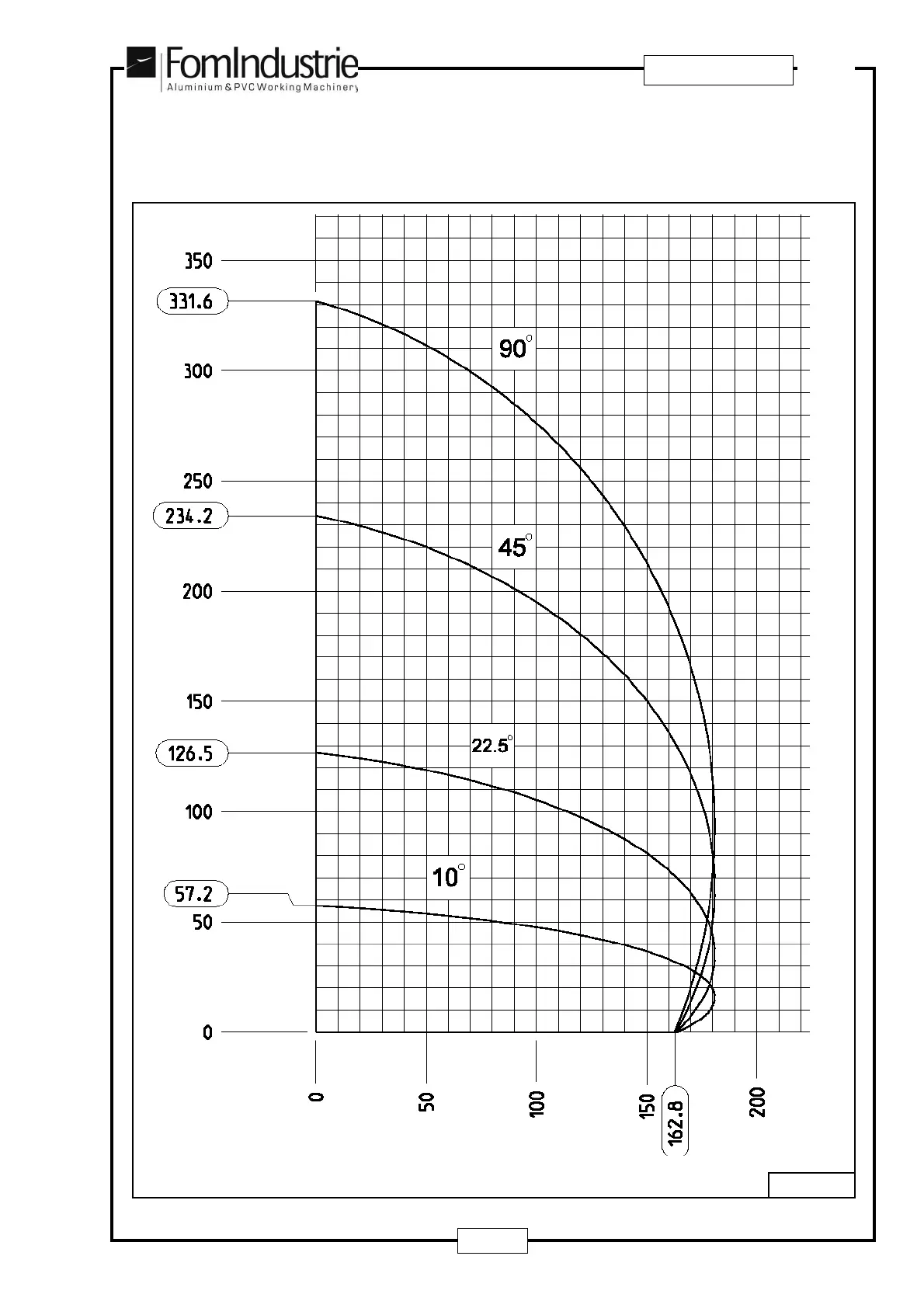 The cutting diagram with the blade Ø 500 mm. illustrates the machine cutting capacity with the blade set at 90°,