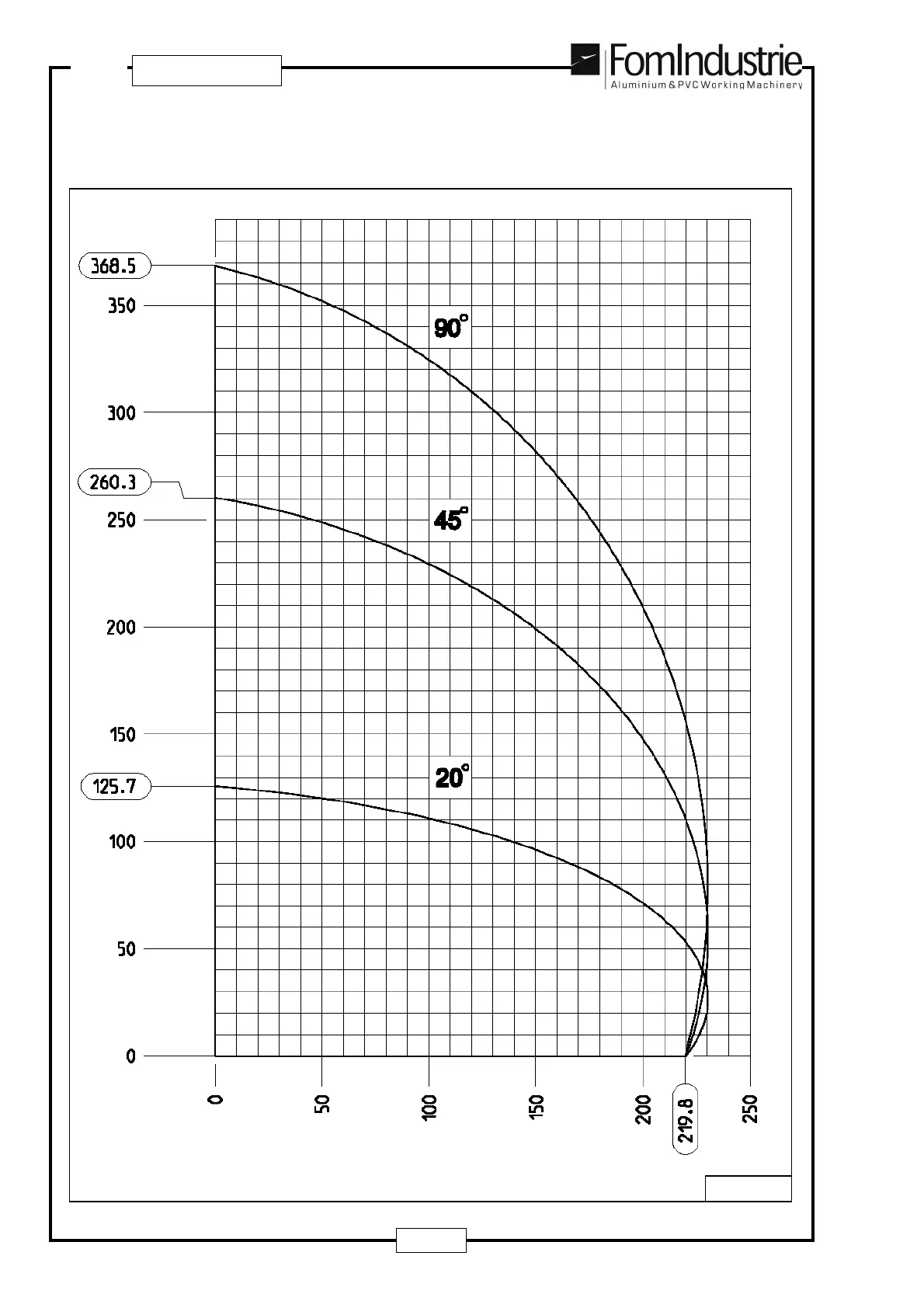 The cutting diagram with the blade Ø 600 mm. illustrates the machine cutting capacity with the blade set