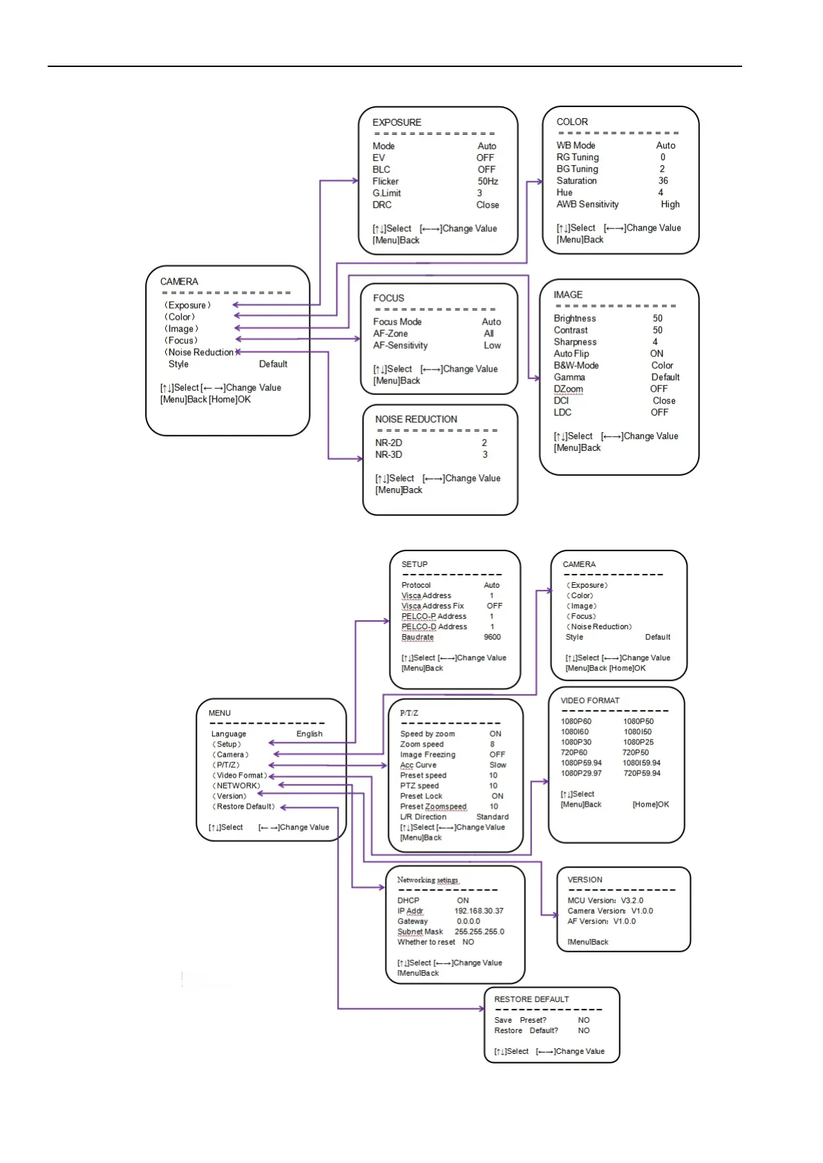 FoMaKo 12X - Camera Menu Structure Visualization; Menu Flowchart and Parameter Categories
