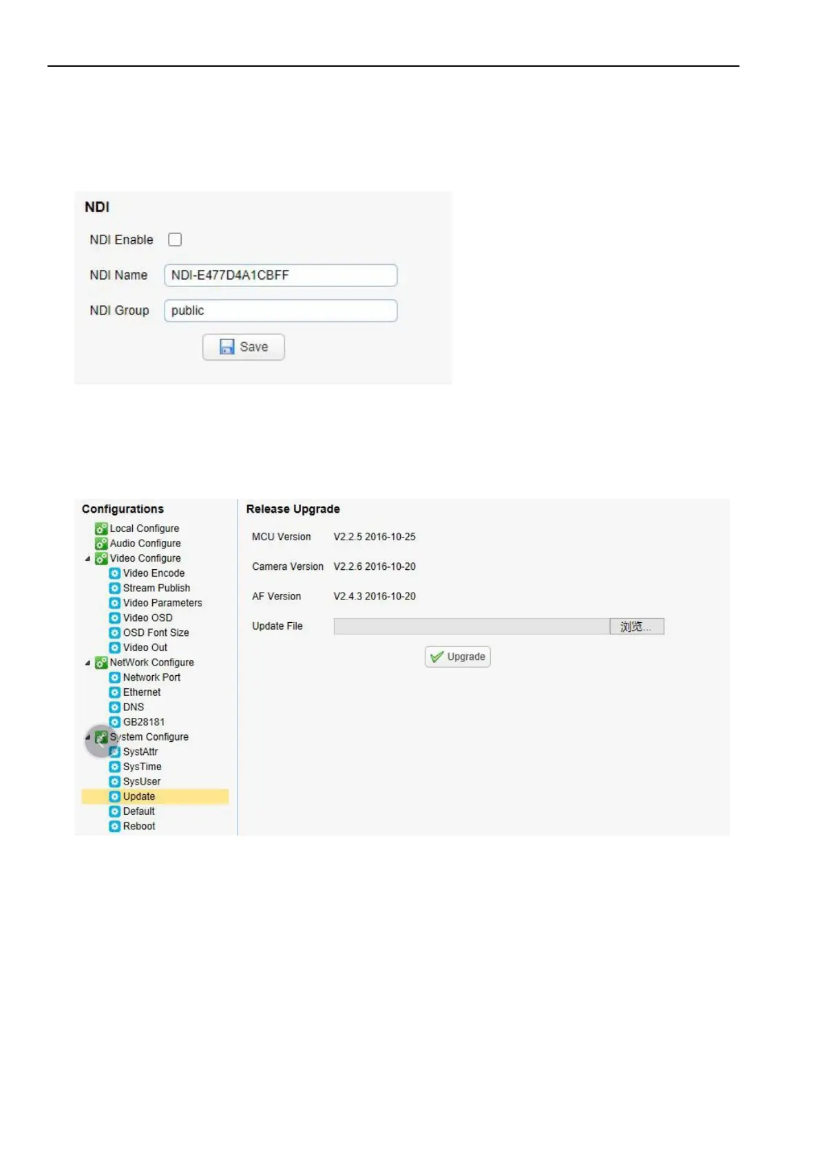 NDI Configuration (for NDI camera only)
