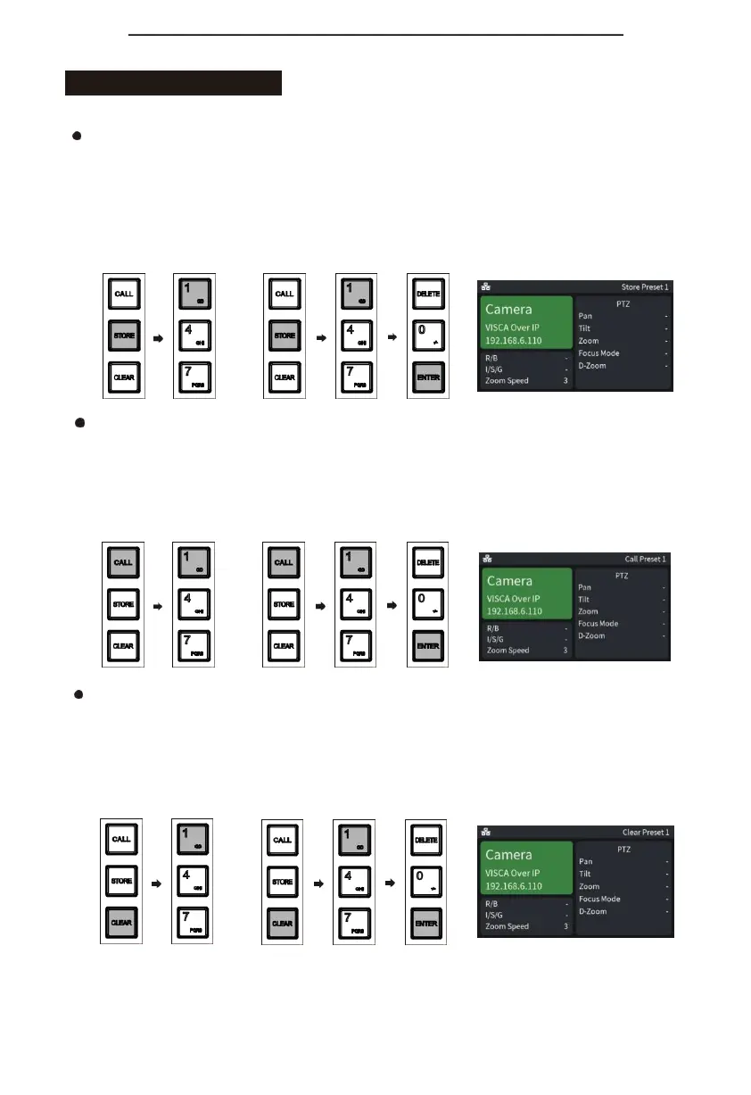 b.①Thepreset position mode is 10: first press the "STORE" key, and then press the number "1"
