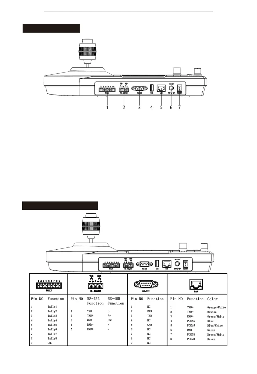 LAN port, connect the controller with network (up to 1000 network cameras can be saved);