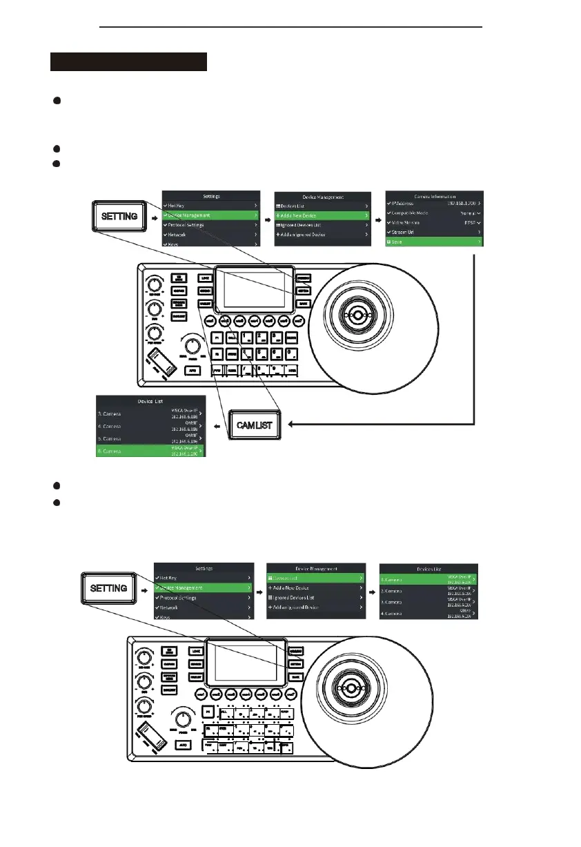 Click "SETTING" to open the keyboard menu, select the "Device List" column, select the "Add