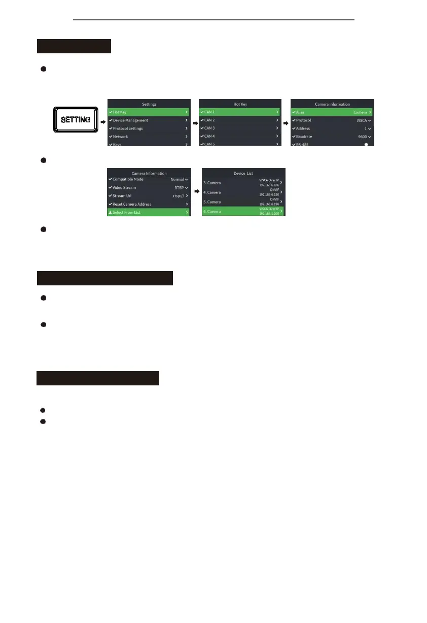 Click "CAM LIST" to open the device list, and then select the device through the joystick or