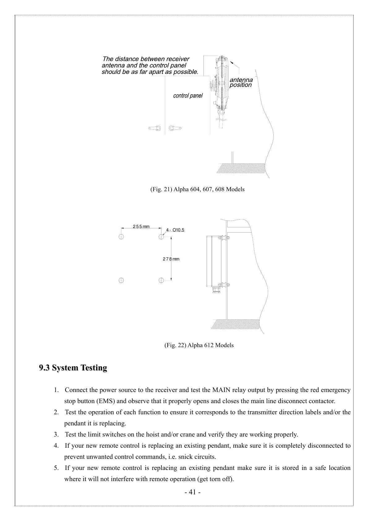 1. Connect the power source to the receiver and test the MAIN relay output by pressing the red emergency