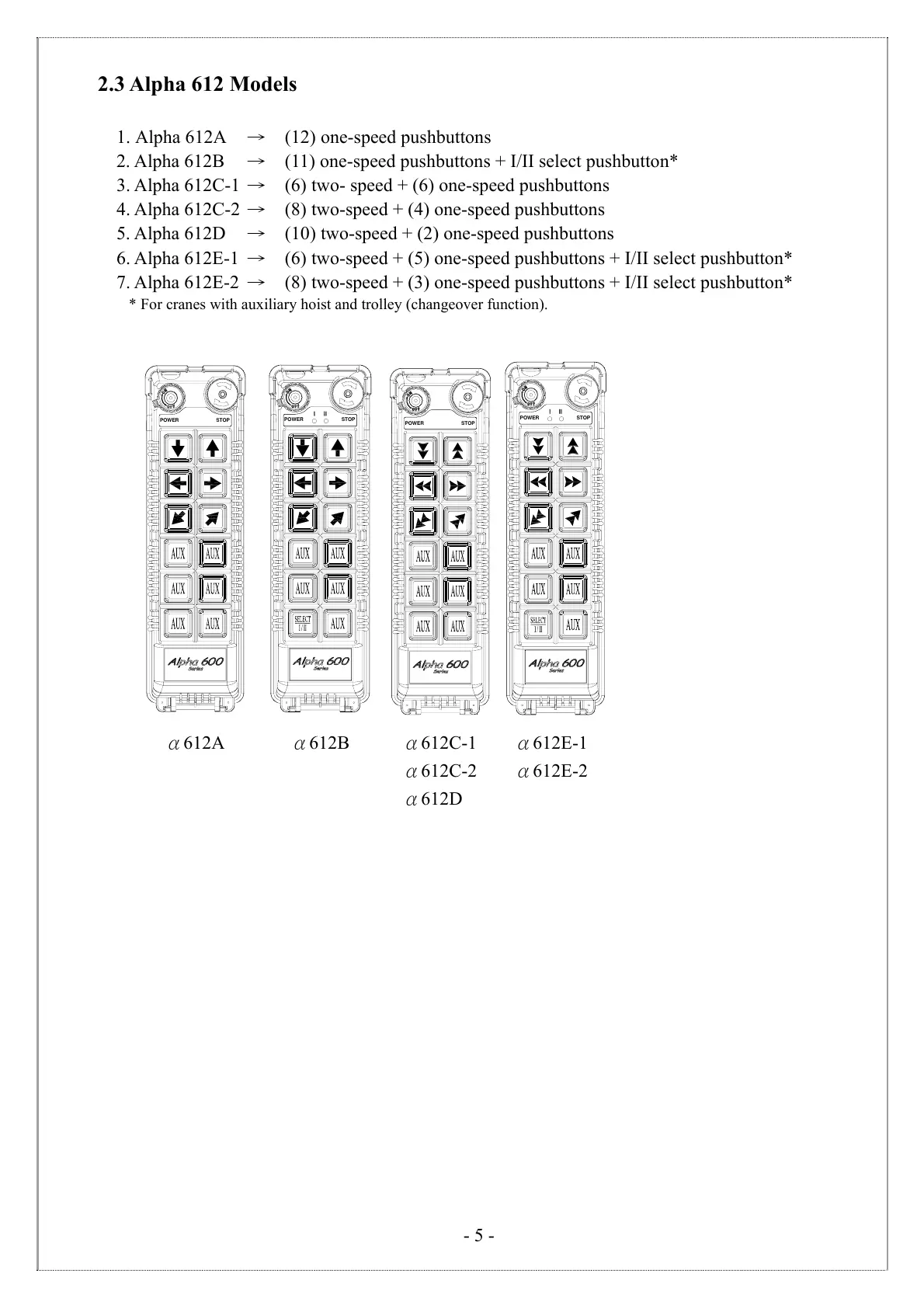 6. Alpha 612E-1 → (6) two-speed + (5) one-speed pushbuttons + I/II select pushbutton*