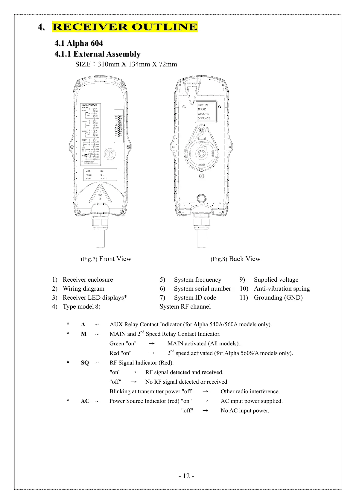 * A ~ AUX Relay Contact Indicator (for Alpha 540A/560A models only).