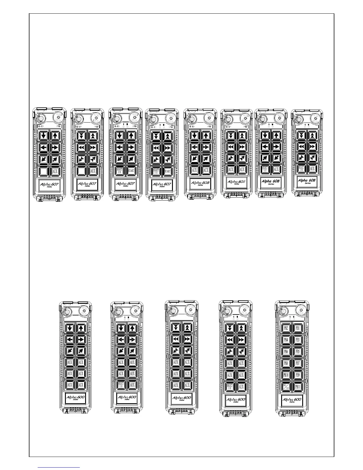 3. Alpha 607AT -- (6) single speed pushbuttons + (1) SELECT I/II pushbutton