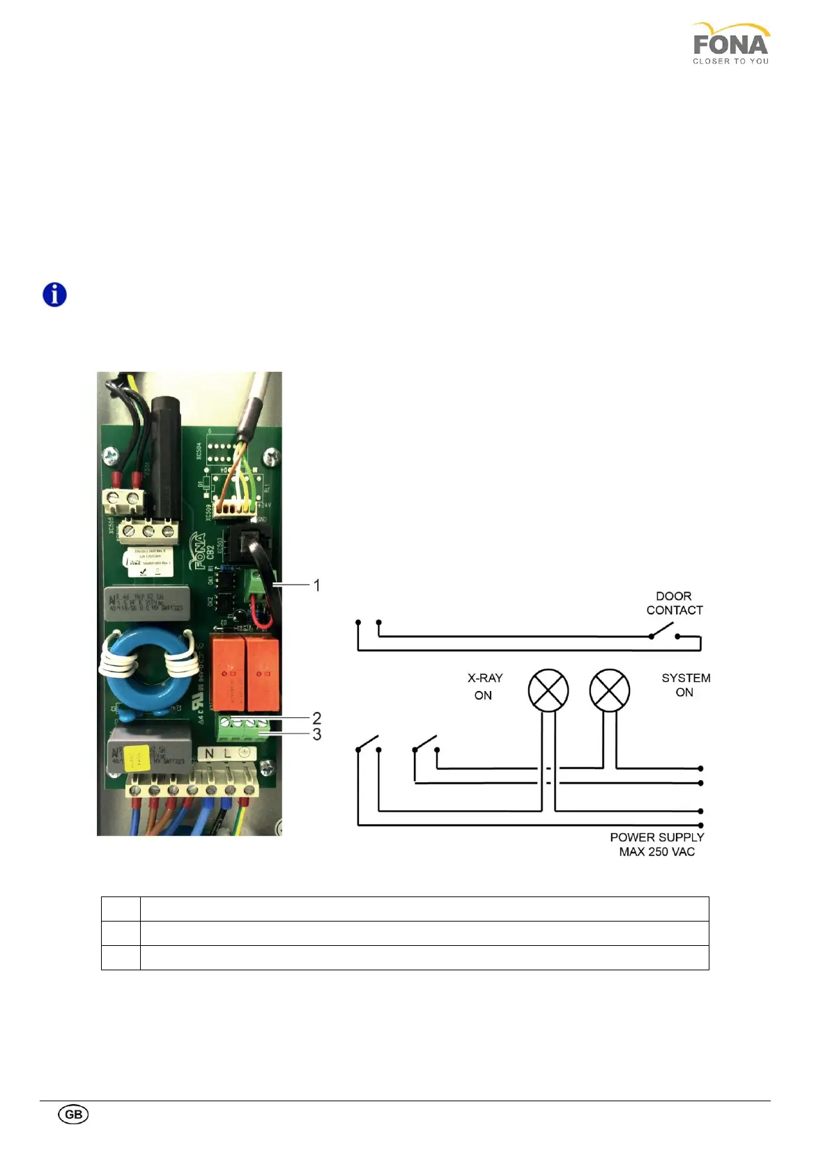 connector X2, which must stay in place if the door contact is not used, otherwise it must be removed to connect