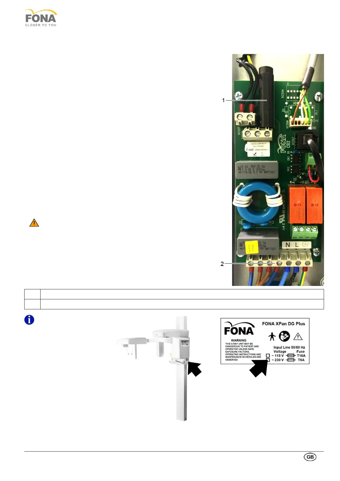 • Apply fuse label for selected mains voltage close to the mains fuse